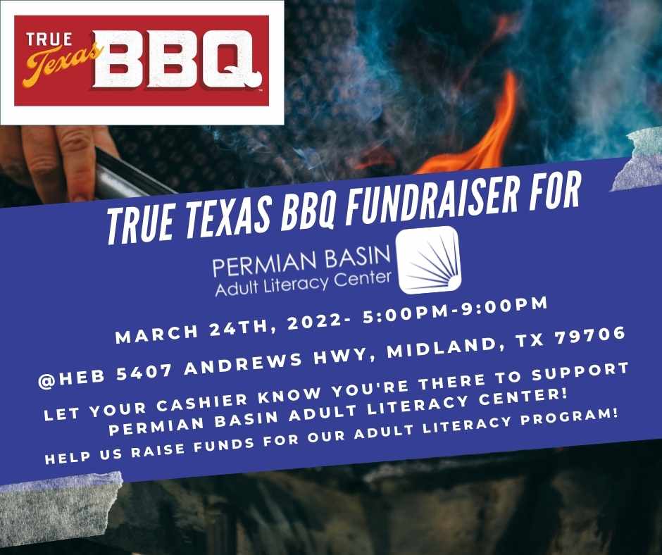 Do you love BBQ? Make sure and come by True Texas BBQ inside the HEB in Midland on March 24th. From 5:00-9:00 PM 15% of the proceeds will go to support PBALC’s Adult Literacy Program! We hope to see you there!